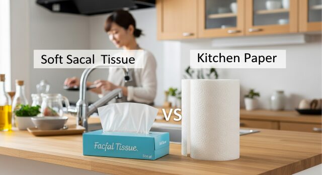我が家では、子供の食事には必ずキッチンペーパー、掃除にはティッシュといった使い分けを徹底しています。