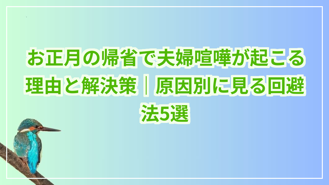 お正月の帰省シーズン、家族で実家へ帰るのは一見ほほえましい行事に見えますが、実は「1年で最も夫婦喧嘩が起こりやすい時期」とも言われています。普段は穏やかな夫婦でも、帰省をきっかけに小さなイライラが積もり、気づけば冷戦…そんな経験がある人も多いのではないでしょうか。