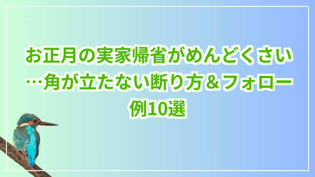 この記事では、「お正月の実家帰省がめんどくさい」と感じるあなたの気持ちに寄り添いながら、角を立てずに断るための伝え方や、気持ちをきちんと届けるフォローのコツを紹介します。